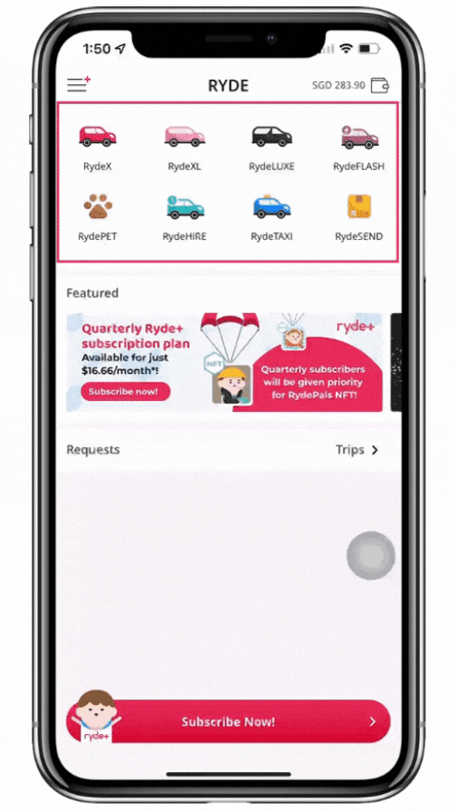 Step 1: Tap onto the RydeX icon in the RYDE app.